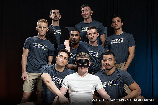After entertaining the group of horny men with a classic game of Beer Pong, the gay cumdump Harrison Todd leads Christopher White, Ryan Rush and Q Moore into a private room to get things started. The other tops file into the room, all gathering around the horny bottom who is eager to take any of their waiting cocks into his mouth to offer a blowjob while bent over. Q Moore is the first top to deposit his load into Harrison’s tight ass, stretching it open in the process and providing his own cum as lube for the next in line. Ryan Rush compliments Harrison on his ‘bouncy butt’ as he lines himself up to bounce his own uncut cock off of the ass in question. Lance Woods, Alfonso Osnaya, Oz Donis, Silas Brooks, Kyle Harper, Nico Coopa, Felix Trainor, Smith Sterling and Donovan Cox are among the rest of the men who join in the fun, whether they shoot their load inside of Harrison’s loosened hole or just take part in gaining some pleasure from the group gang bang.